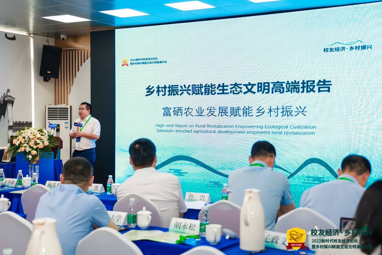 為進(jìn)一步探索高校服務(wù)我國重大戰(zhàn)略的新路徑,2022年6月18日,“2022新時(shí)代校友經(jīng)濟(jì)論壇暨鄉(xiāng)村振興賦能生態(tài)文明對(duì)話”在成都崇州市召開。中國地質(zhì)大學(xué)(武漢)校長王焰新院士致辭,中地國際硒研院田熙科教授做主旨報(bào)告。
