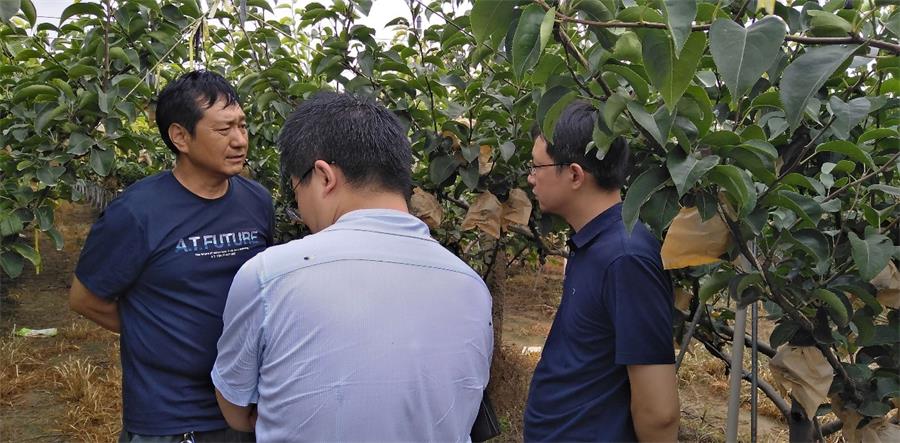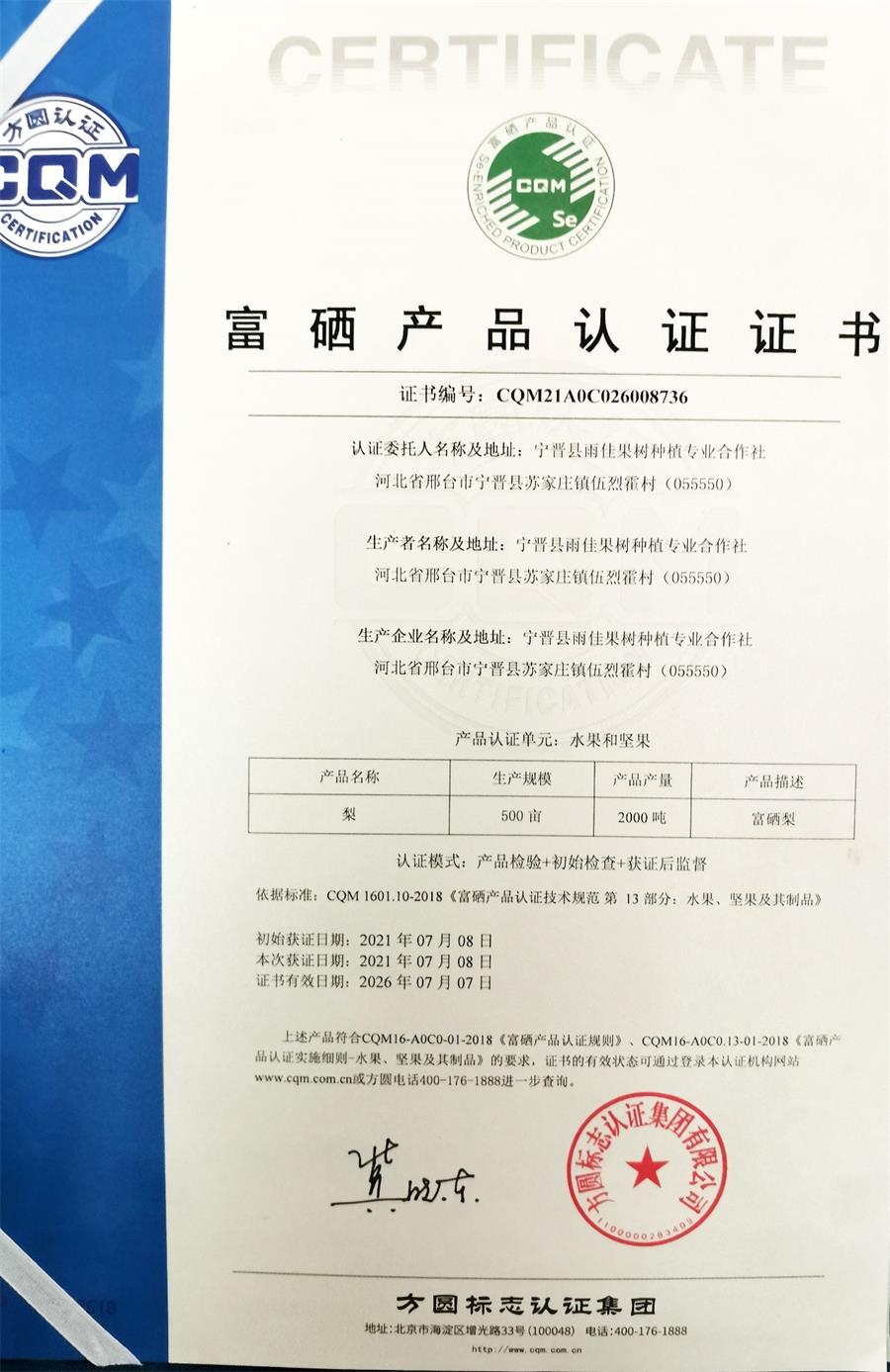 在寧晉縣,雨佳果樹(shù)種植專l業(yè)合作社負(fù)責(zé)人霍總向羅總和于總一行詳細(xì)介紹了果園品種分布,分批上市時(shí)間。雨佳合作社是該市智慧農(nóng)業(yè)應(yīng)用示范點(diǎn),產(chǎn)品多次獲得京津冀果品爭(zhēng)霸賽金獎(jiǎng)。在霍總的帶領(lǐng)下,雨佳合作社在通過(guò)歐盟質(zhì)量認(rèn)證體系基礎(chǔ)上又與中國(guó)地質(zhì)大學(xué)(武漢)國(guó)際硒科學(xué)與產(chǎn)業(yè)發(fā)展研究院合作,將有機(jī)、富硒、酵素三效合一,研發(fā)了富硒梨果產(chǎn)品,已經(jīng)連續(xù)兩年獲得第三方機(jī)構(gòu)的“富硒產(chǎn)品認(rèn)證證書(shū)”。去年有200余mu富硒梨果被香港某大型超市提前批量訂購(gòu)。非常巧合的是,今年香港客商也在同一天來(lái)到了霍總的富硒梨基地,商定今年的采購(gòu)計(jì)劃。