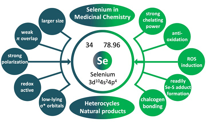 圖2. 硒的化學(xué)性質(zhì)與其藥物化學(xué)生物學(xué)性質(zhì)的聯(lián)系。圖片來(lái)源:J Med Chem