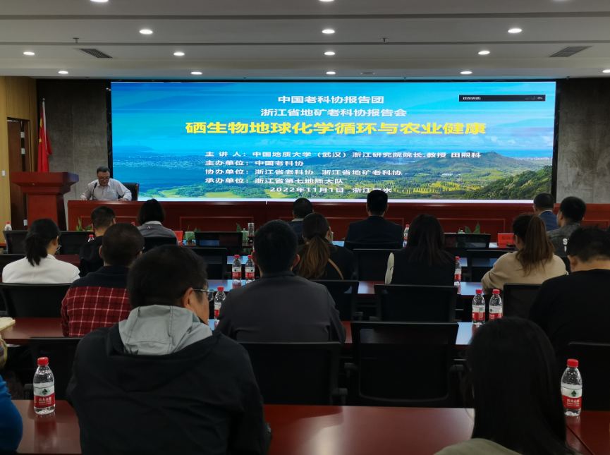11月1日下午,由中國老科協(xié)主辦、浙江省老科協(xié)及浙江省地礦老科協(xié)協(xié)辦、浙江省第七地質(zhì)大隊(duì)承辦的《硒生物地球化學(xué)循環(huán)與農(nóng)業(yè)健康》科普?qǐng)?bào)告會(huì)在我隊(duì)麗水科研大樓成功舉辦。中國地質(zhì)大學(xué)(武漢)浙江研究院院長、教授、博士生導(dǎo)師田熙科受邀為來自省內(nèi)多家地勘單位的50余位地質(zhì)技術(shù)人員作“硒生物地球化學(xué)循環(huán)與農(nóng)業(yè)健康”的線上科普?qǐng)?bào)告。中國地質(zhì)大學(xué)(武漢)浙江研究院副院長王肖戈,省第十一地質(zhì)大隊(duì)黨委書記、隊(duì)長吳義,大隊(duì)黨委副書記、副隊(duì)長王志國,省第十一地質(zhì)大隊(duì)黨委委員秦海燕出席報(bào)告會(huì)?;顒?dòng)由省地礦老科協(xié)副秘書長陳衛(wèi)良主持。